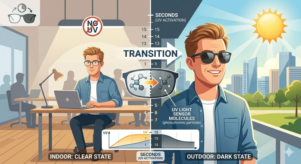 However, note that photochromic lenses do not replace sunglasses and are not essential for pure indoor screen work.